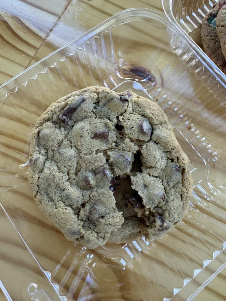 Chocolate chip, peanut butter, snickerdoodle, M&M, and more — baked fresh with gluten-free and vegan options available.